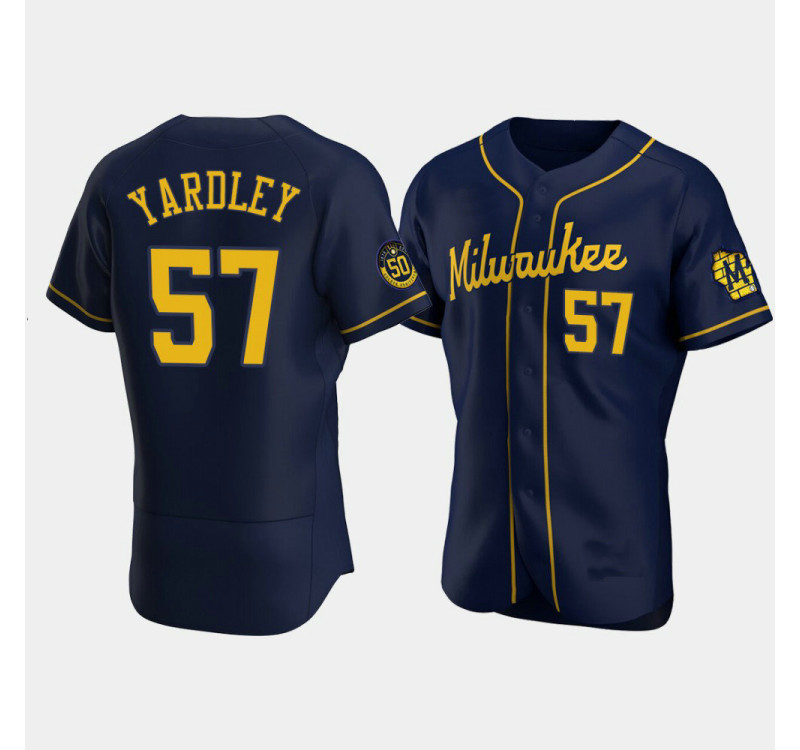 • Eric Yardley Milwaukee Brewers 50th Anniversary Navy Authentic Alternate Jersey
