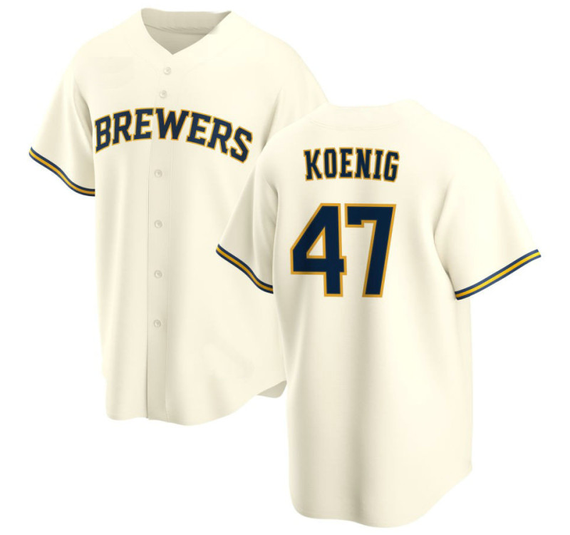 - Jared Koenig #47 Brewers Home Jersey - Cream Replica