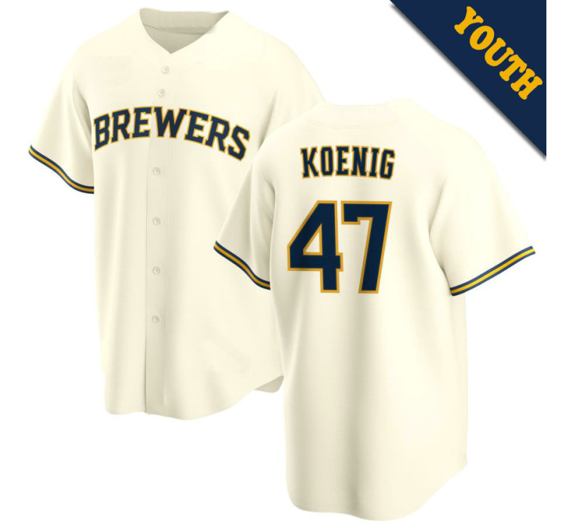 - Jared Koenig #47 Brewers Kid's Home Jersey - Cream Replica