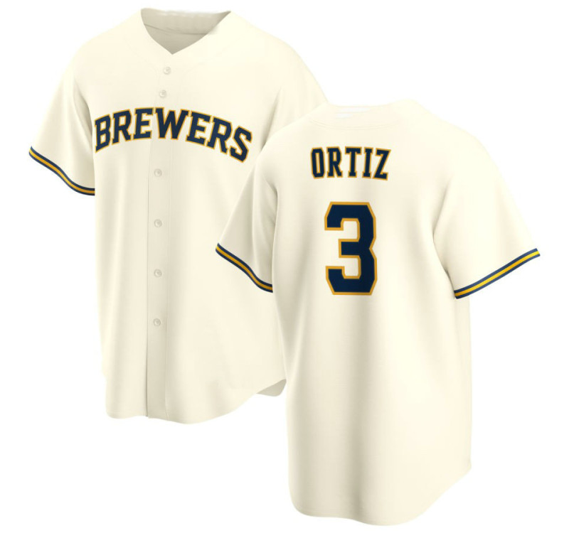 - Joey Ortiz #3 Brewers Home Jersey - Cream Replica