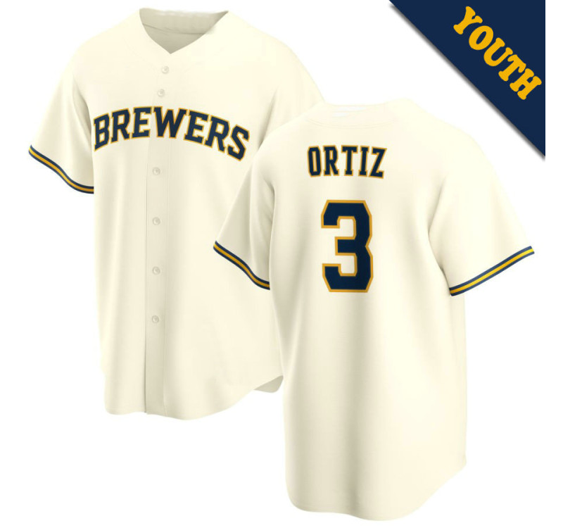 - Joey Ortiz #3 Brewers Kid's Home Jersey - Cream Limited