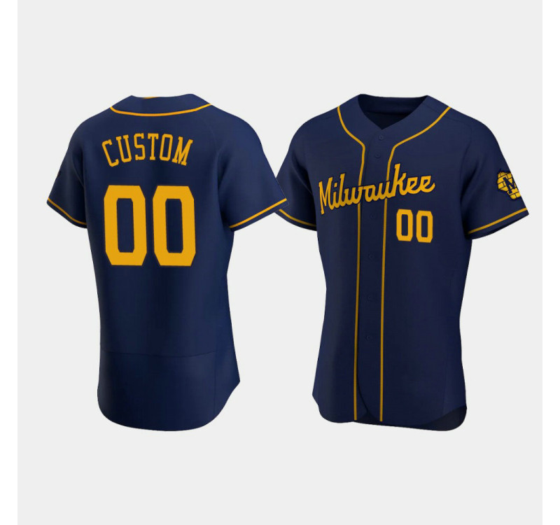 - Men's Brewers #00 Custom Navy Authentic Team Alternate Jersey