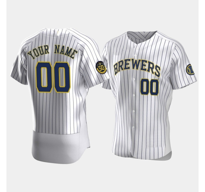 • Men's Brewers #00 Custom White Authentic 50th Anniversary 2020 Home Jersey
