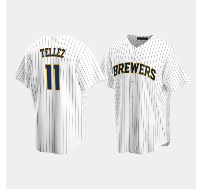 - Men's Brewers #11 Rowdy Tellez White Navy Replica Alternate Jersey