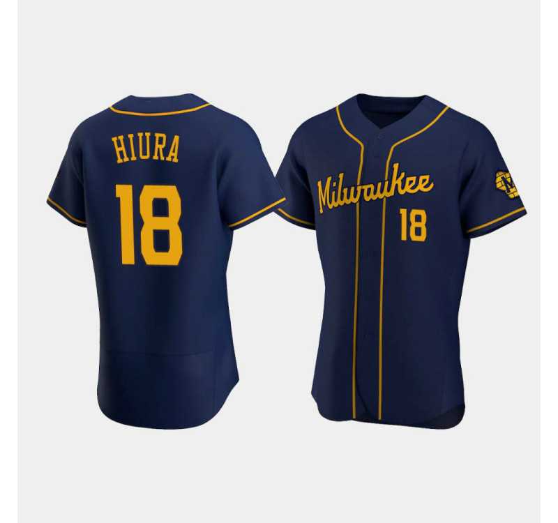- Men's Brewers #18 Keston Hiura Navy Authentic Team Alternate Jersey