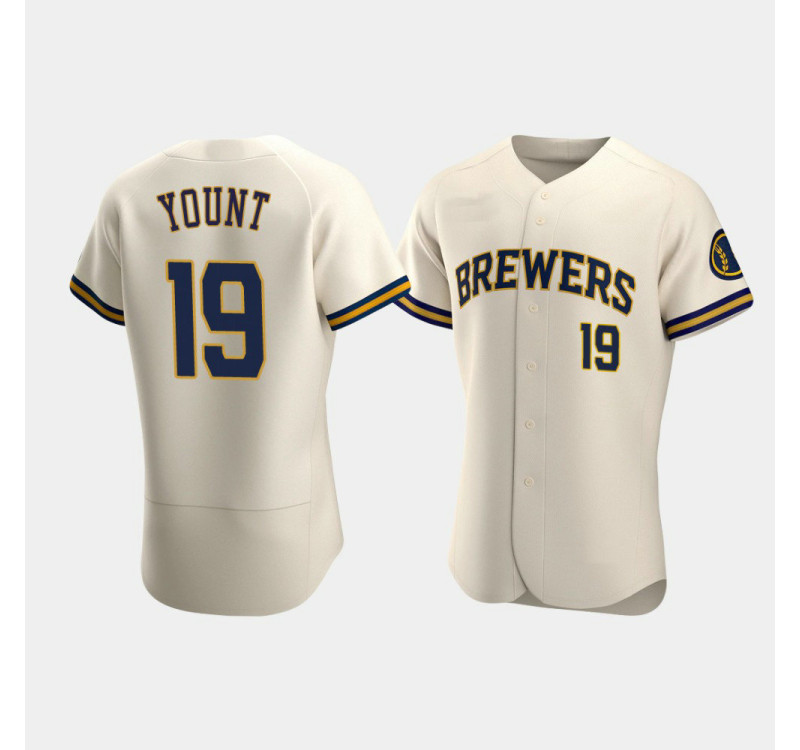 - Men's Brewers #19 Robin Yount Cream Authentic Team Home Jersey