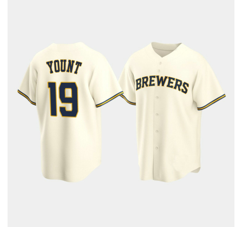 - Men's Brewers #19 Robin Yount Cream Replica Home Jersey