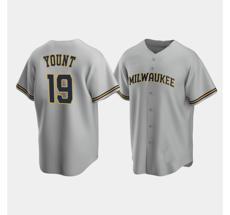 • Men's Milwaukee Brewers #19 Robin Yount Gray Replica Road Jersey