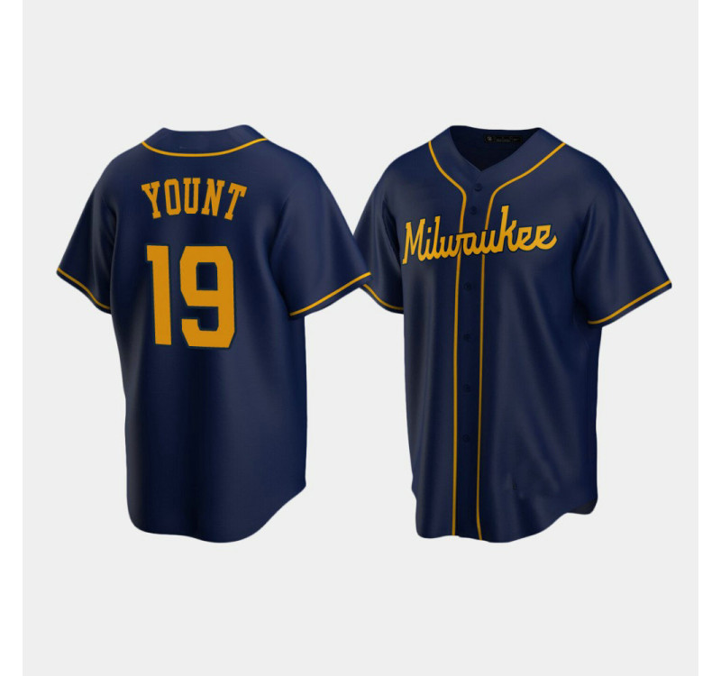 - Men's Brewers #19 Robin Yount Navy Replica Alternate Jersey