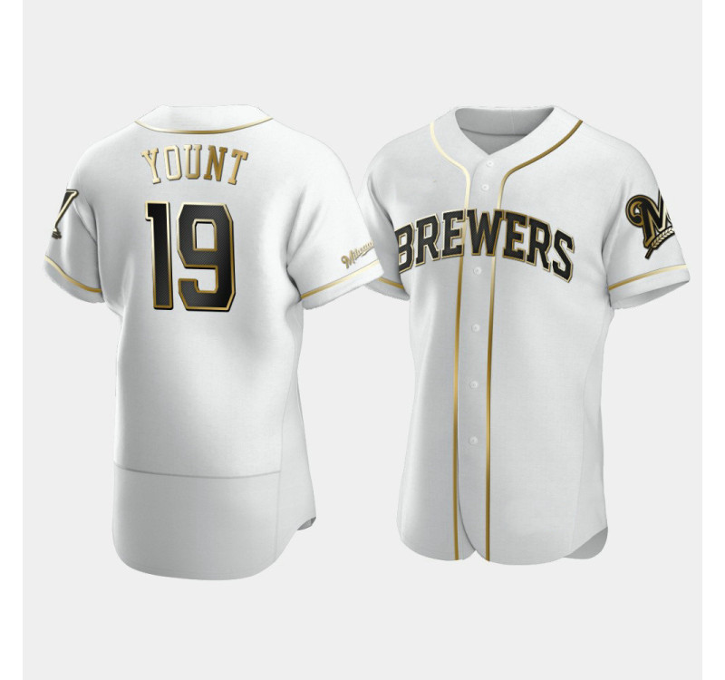 - Men's Brewers #19 Robin Yount White Golden Edition Authentic Jersey