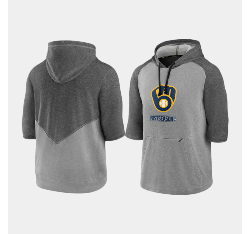 - Men's Brewers 2020 Postseason Charcoal Heather Gray Authentic Collection Pullover Hoodie