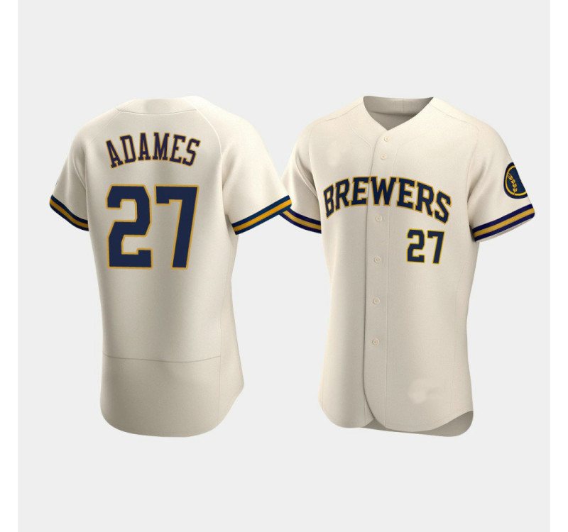 - Men's Brewers #27 Willy Adames Cream Authentic Team Home Jersey
