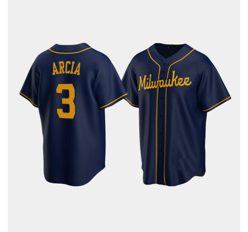 - Men's Brewers #3 Orlando Arcia Navy Replica Alternate Jersey