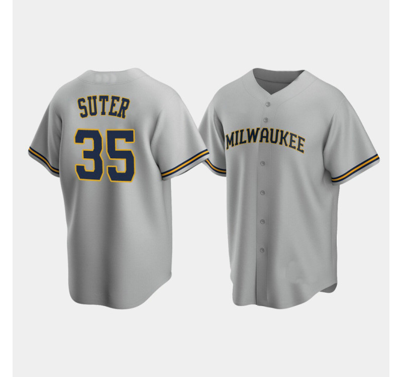 - Men's Brewers #35 Brent Suter Gray Replica Road Jersey
