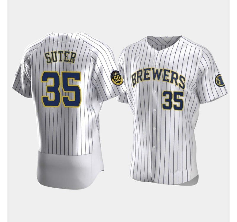 - Men's Brewers #35 Brent Suter White Authentic 50th Anniversary 2020 Home Jersey