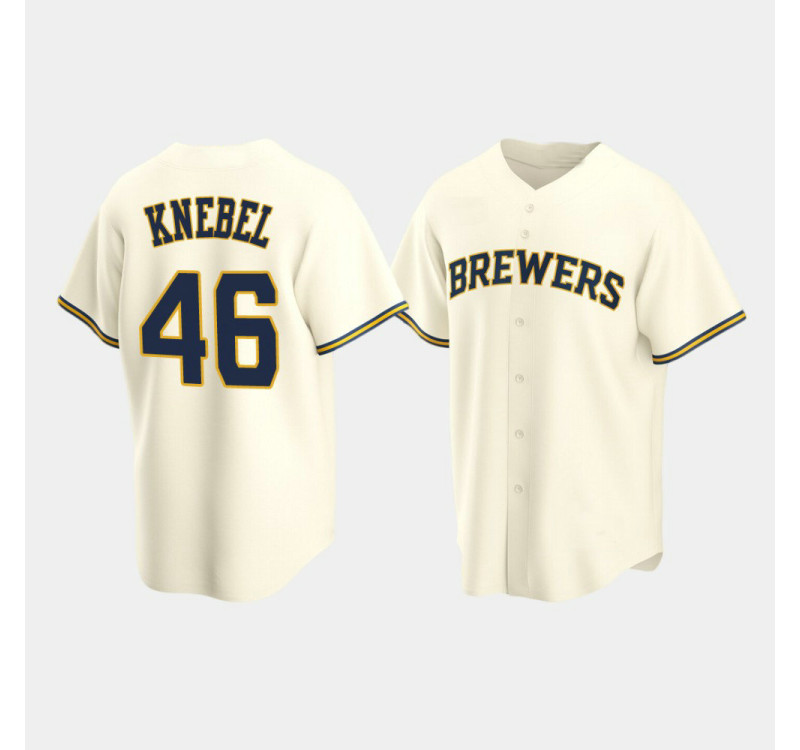 - Men's Brewers #46 Corey Knebel Cream Replica Home Jersey