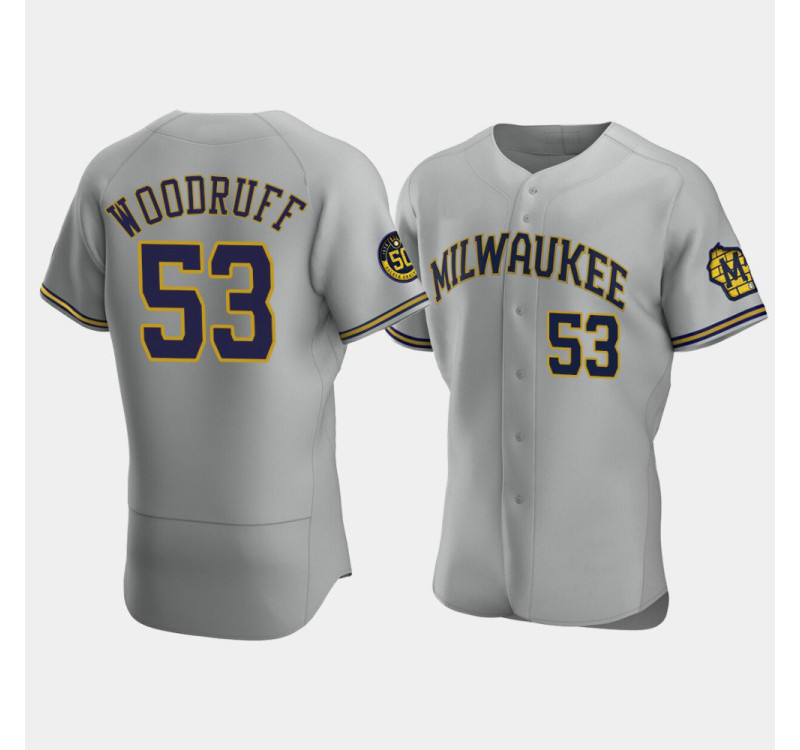 - Men's Brewers #53 Brandon Woodruff Gray Authentic 50th Anniversary 2020 Road Jersey