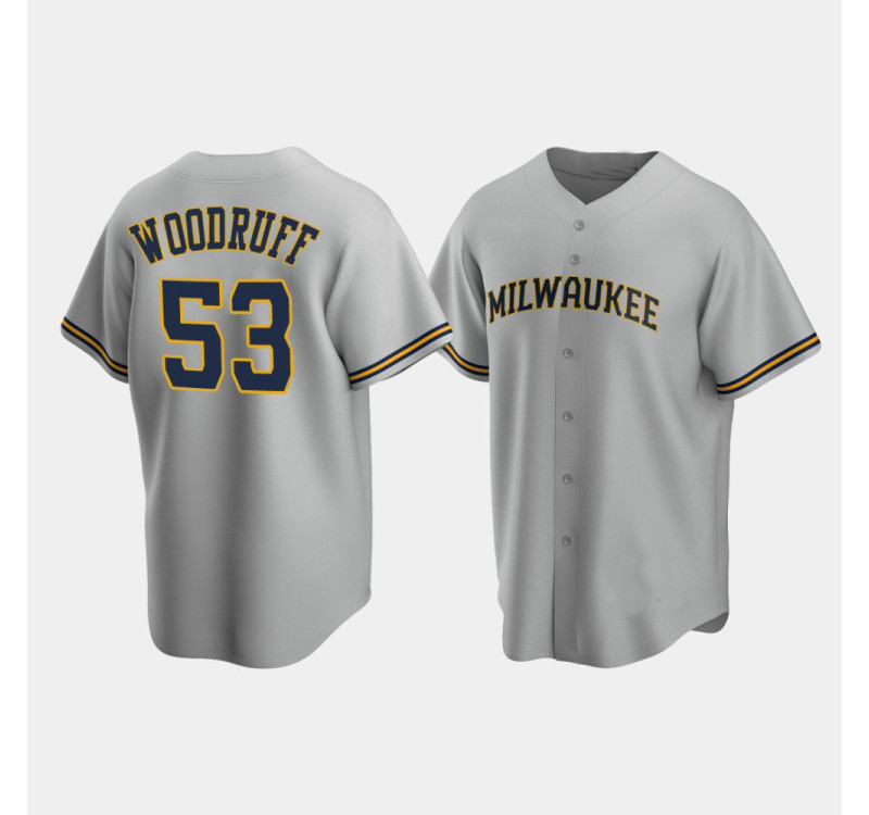 - Men's Brewers #53 Brandon Woodruff Gray Replica Road Jersey