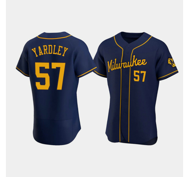 - Men's Brewers #57 Eric Yardley Navy Authentic Team Alternate Jersey