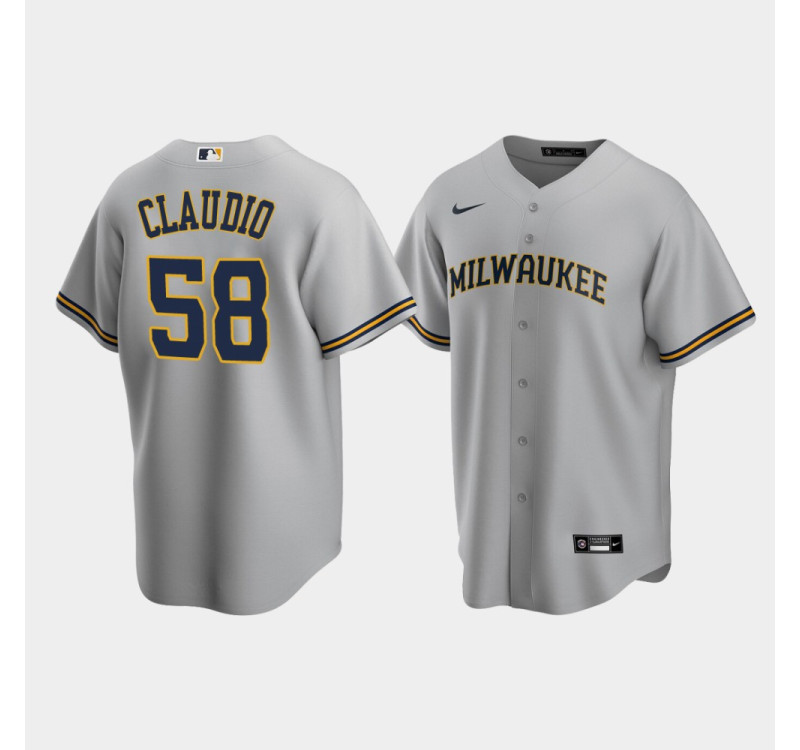 - Men's Brewers #58 Alex Claudio Gray Replica Road Jersey