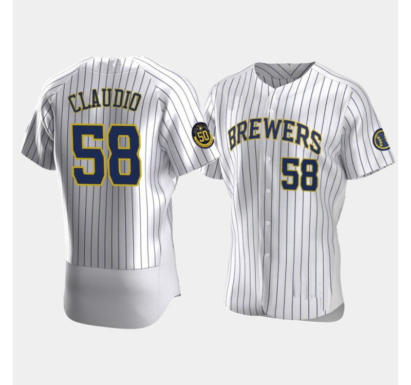 - Men's Brewers #58 Alex Claudio White Authentic 50th Anniversary 2020 Home Jersey