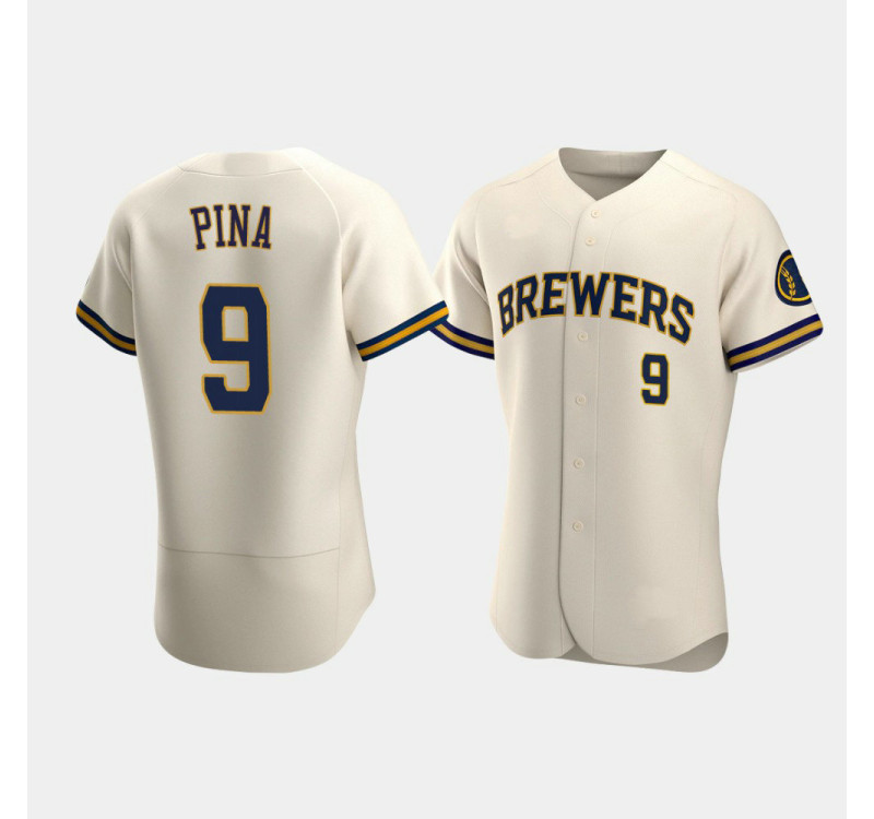 - Men's Brewers #9 Manny Pina Cream Authentic Team Home Jersey