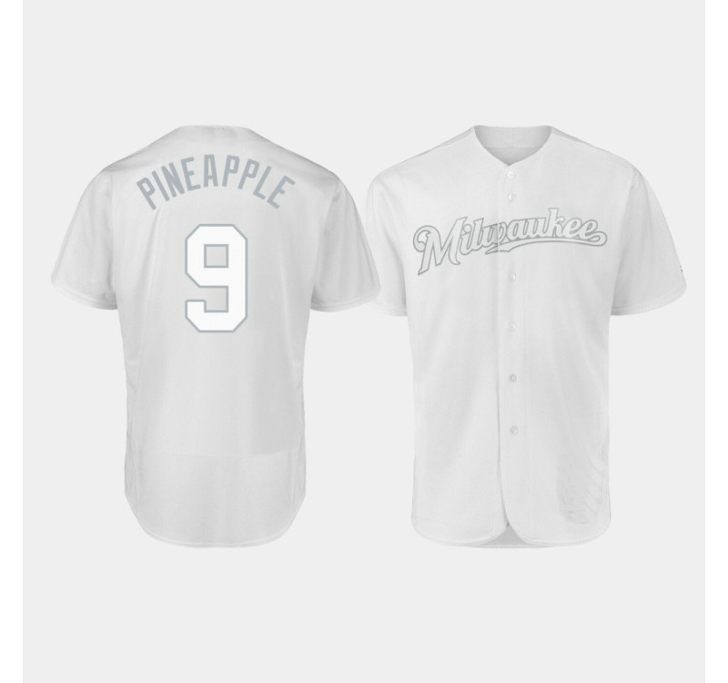 - Men's Brewers Authentic #9 Manny Pina 2019 Players' Weekend White Pineapple Jersey