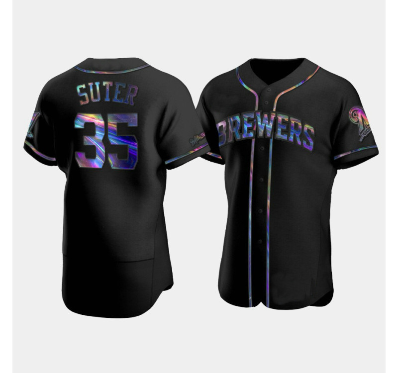 - Men's Brewers Brent Suter Black Authentic Golden Edition Holographic Jersey