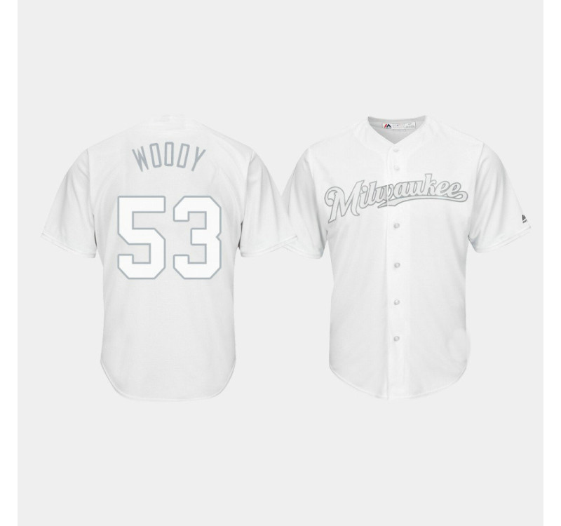 - Brewers #53 Brandon Woodruff 2019 Players' Weekend Woody White Replica Jersey Men's