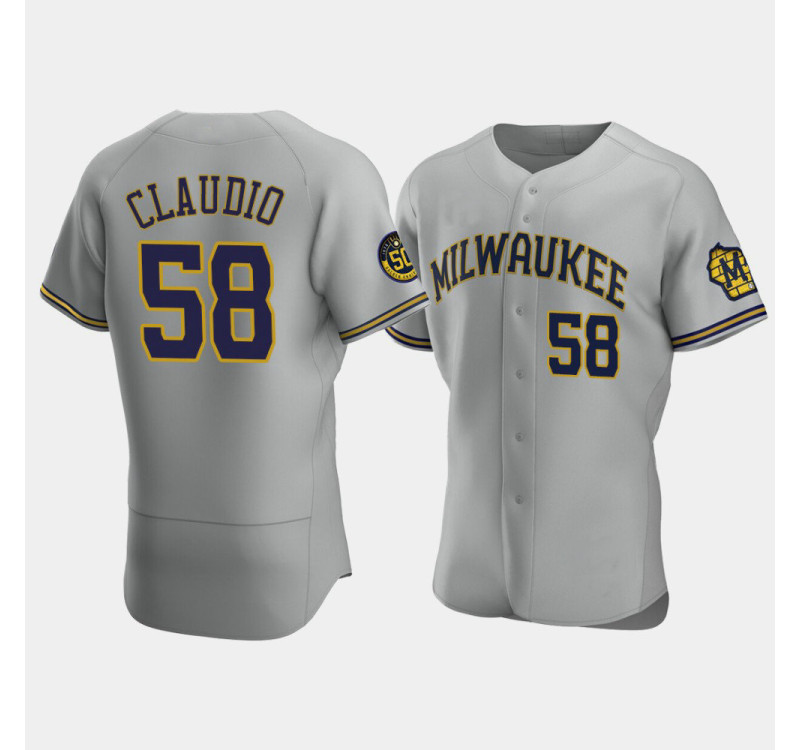 - Men's Brewers #58 Alex Claudio Gray Authentic 50th Anniversary 2020 Road Jersey