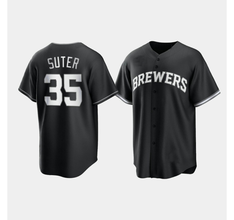 - Brewers Brent Suter Black White 2021 All Black Fashion Replica Jersey