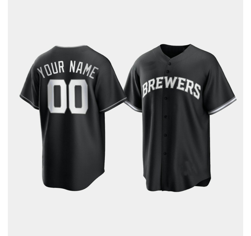 - Brewers Custom Black White 2021 All Black Fashion Replica Jersey