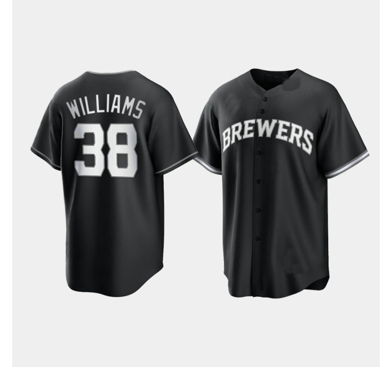 Milwaukee Brewers Devin Williams Black White 2021 All Black Fashion Replica Jersey
