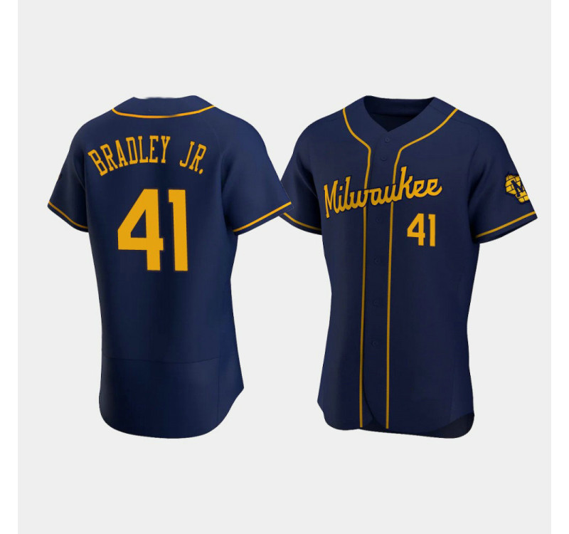 • Men's Milwaukee Brewers #41 Jackie Bradley Jr. Navy Authentic Team Alternate Jersey