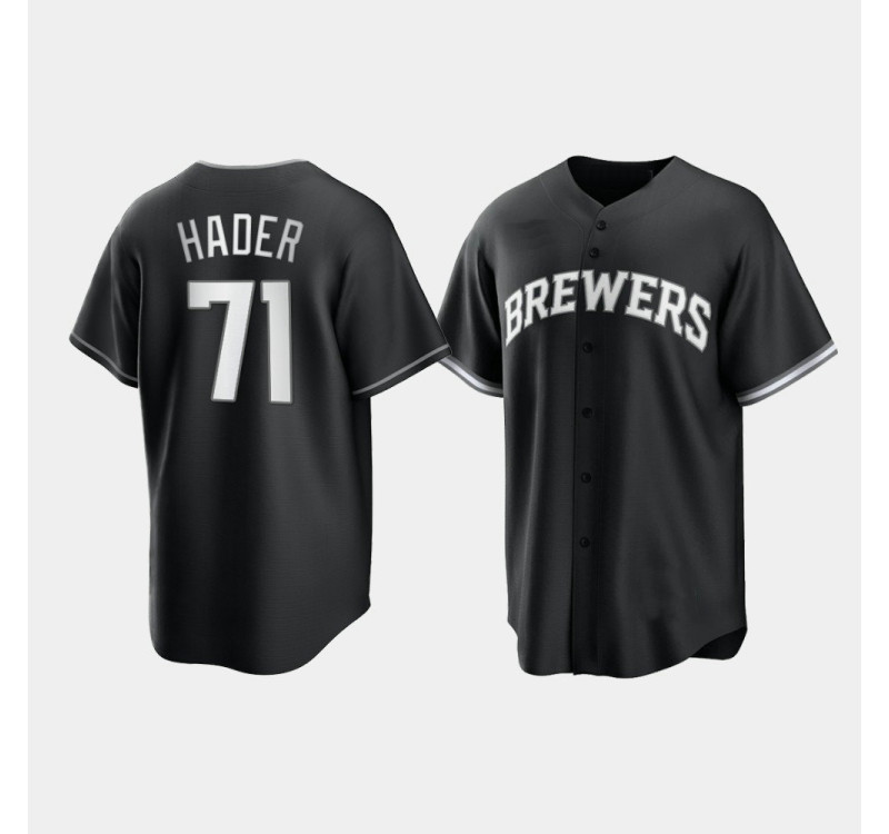 - Brewers Josh Hader Black White 2021 All Black Fashion Replica Jersey