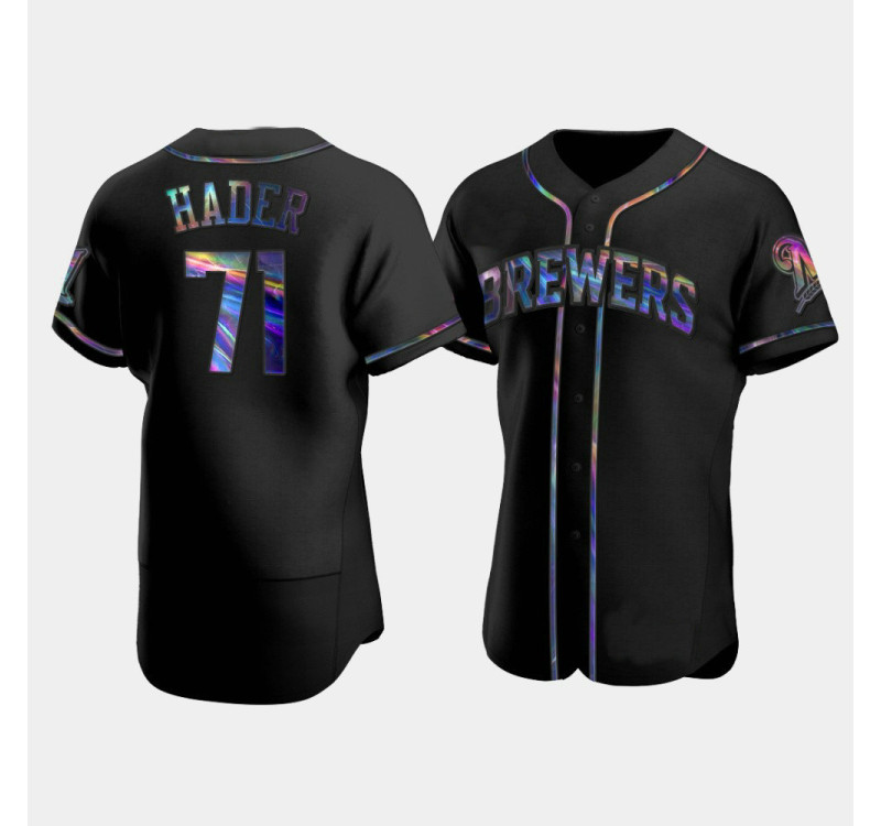 - Men's Brewers Josh Hader Black Authentic Golden Edition Holographic Jersey