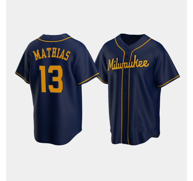 - Men's Brewers #13 Mark Mathias Navy Replica Alternate Jersey