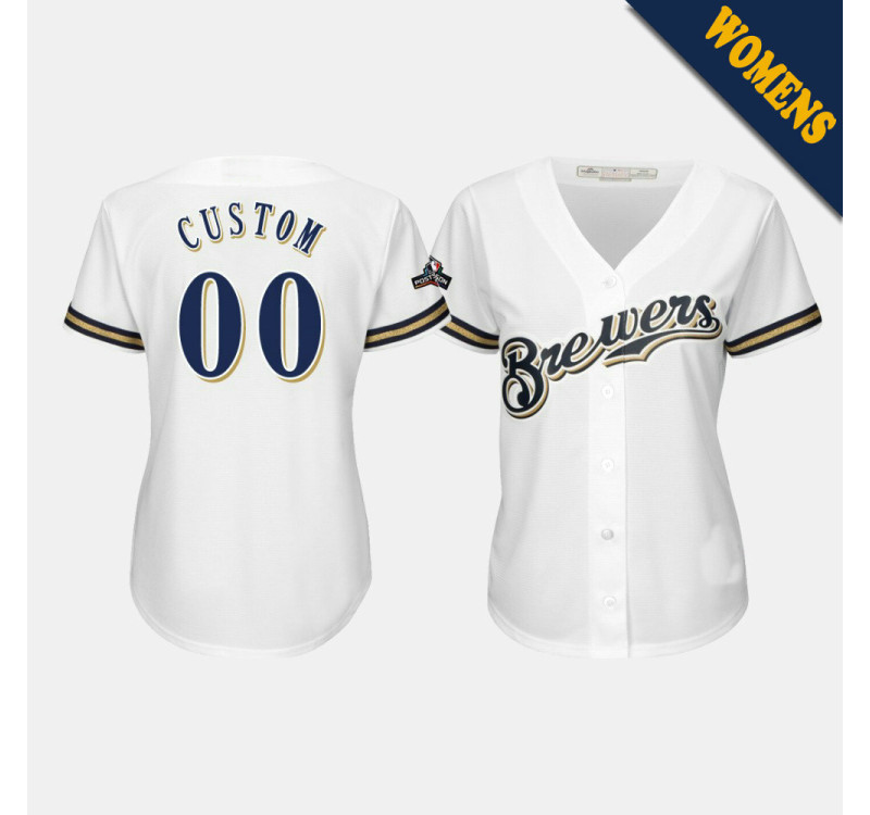 • Brewers Women's #00 Custom 2019 Postseason White Official Cool Base Jersey