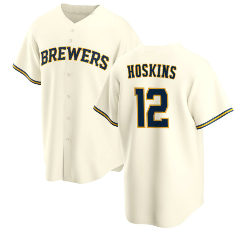 - Rhys Hoskins #12 Brewers Home Jersey - Cream Replica