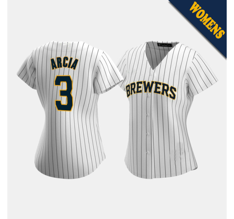 - Women's Brewers Orlando Arcia #3 White Replica 2020 Alternate Jersey