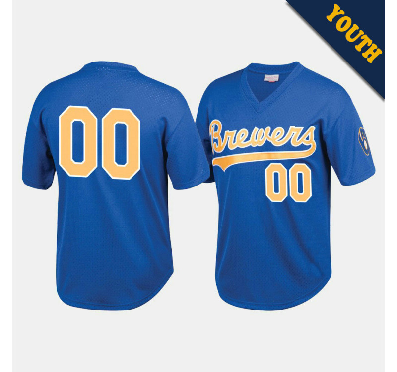 • Youth Milwaukee Brewers Custom #00 Royal Cooperstown Collection Batting Practice Mesh Jersey