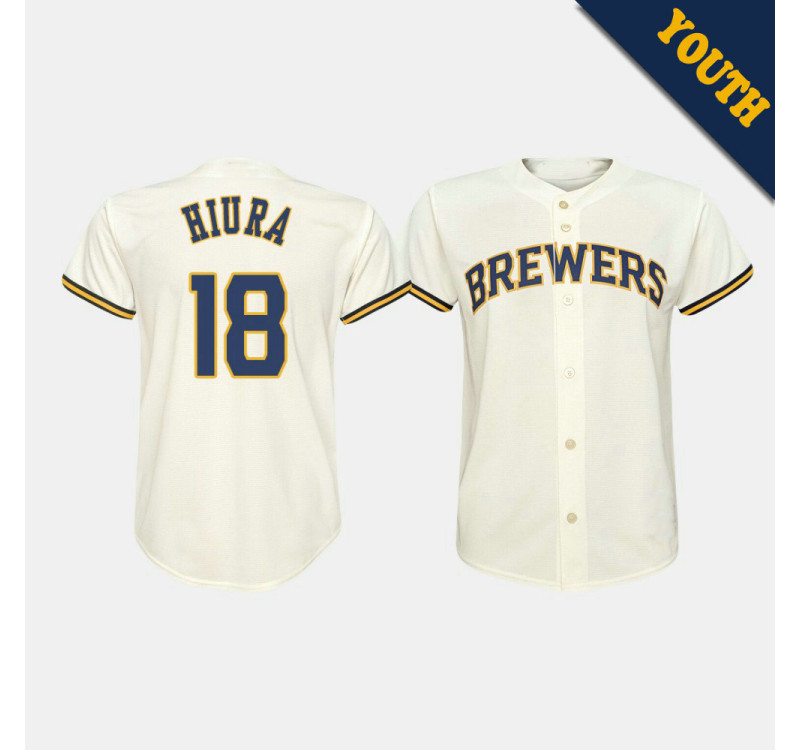 - Kid's Brewers Keston Hiura #18 Cream Replica Home Jersey